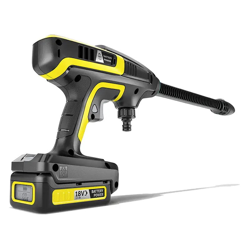 Мойка Karcher KHB 6 Battery работает от съемного 18-вольтового аккумулятора емкостью 2,5 Ач, поэтому не нуждается в подключении к электросети. Время работы на одном заряде аккумулятора составляет 12 минут. Аппарат для мойки подключается к водопроводу или всасывающему шлангу для забора воды из открытых источников. Максимальная температура воды для мойки составляет 40°С.