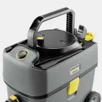 Он обладает превосходной силой всасывания при очень низком уровне шума и отличается экологичностью, высокой надежностью и отличным соотношением цены и качества. Долгий срок службы пылесоса обеспечивается, в частности, прочной конструкцией шасси, корпуса, отбойника и больших колес. Несмотря на высокую силу всасывания, уровень шума T 15/1 составляет всего 52 дБ(A), благодаря чему пылесос можно без проблем использовать для уборки в рабочее время и на объектах, требующих соблюдения тишины. Компактный, маневренный и устойчивый к опрокидыванию аппарат снабжен удобной складной ручкой для переноски, облегчающей его транспортировку. Объем мусоросборника составляет 15 л.