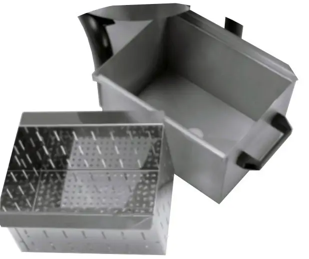 В комплекте с мезгасборником – фильтром для улавливания очистков, что предотвращает засорение канализации