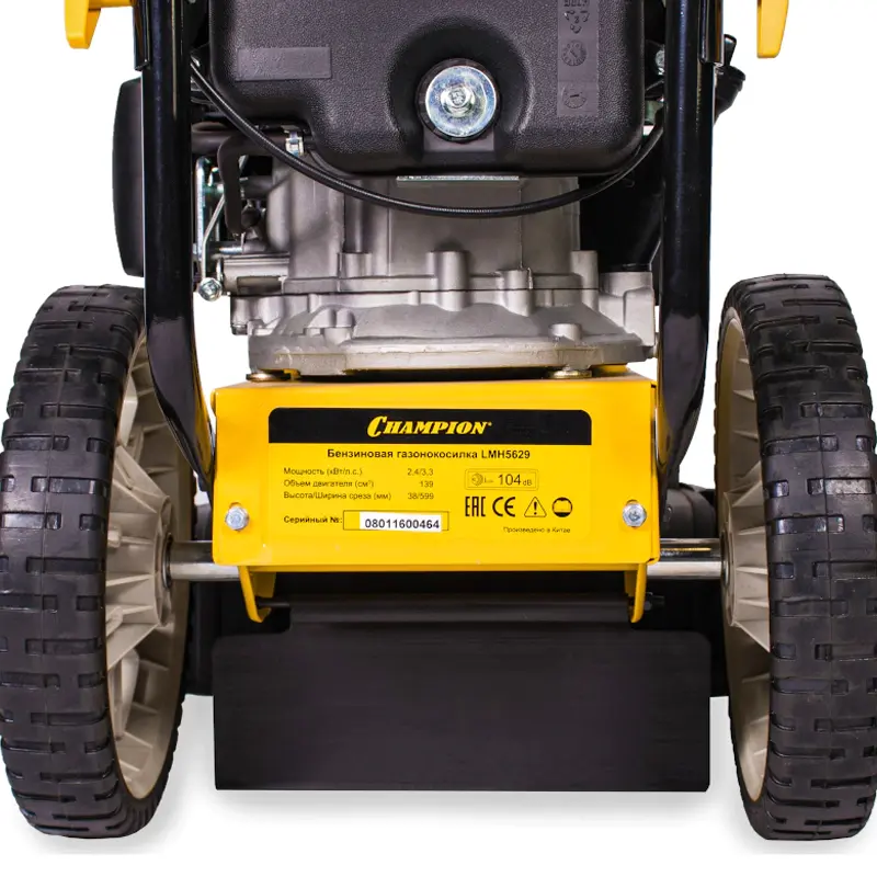 Кожух ременной передачи и рабочая режущая часть косилки Сhampion LMH5629 выполнены из стали. Это продлевает долговечность основных узлов машины. Для вашей защиты от летящих в стороны частиц травы и земли предусмотрены широкие отбойники.