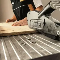 Для точного распиливания предусмотрена система позиционирования линии реза XPS. Встроенный фонарик создает тень от режущего диска, которая падает на заготовку. Такая система не требует проведения калибровки и при этом выступает в качестве подсветки, что удобно если на изделие падает сторонняя тень.