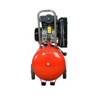 Компрессор работает в режиме попеременного пуска и паузы. Реле давления останавливает двигатель при достижении уровня 10 бар. Сжатие воздуха возобновляется, когда давление падает на 2 бара. Для подключения пневмоинструмента предусмотрены два выхода с манометрами. На редуцируемом выходе давление можно менять, поворачивая ручку регулятора. Прямой выход предназначен для подачи воздуха с максимальным сжатием.