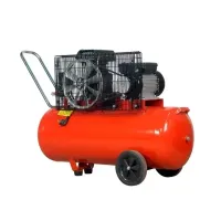 Два цилиндра масляного компрессора расположены в ряд, поэтому изнашиваются равномерно со всех сторон и дольше служат. Ременный привод обеспечивает плавный старт и мягкую работу двигателя, снижает уровень шума, повышает моторесурс. Ресивер объемом 100 л изготовлен из стали толщиной 2,5 мм. Через ревизионные отверстия удобно проверять качество сварных швов и отслеживать коррозионные процессы. Для слива конденсата предусмотрен клапан.