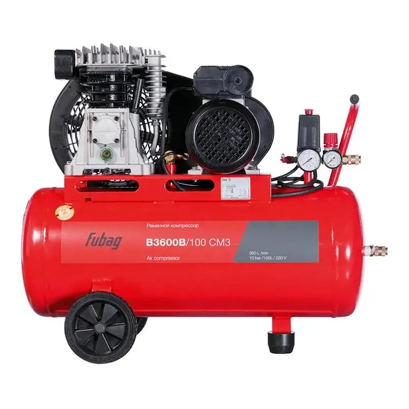 Компрессор Fubag B3600B/100 CM3 с ресивером на 100 л нагнетает давление до 10 бар, обеспечивает стабильное питание пневмоинструмента в гараже, автосервисе, мастерской. Модель с производительностью 360 л/мин повышает эффективность работ с использованием сжатого воздуха.