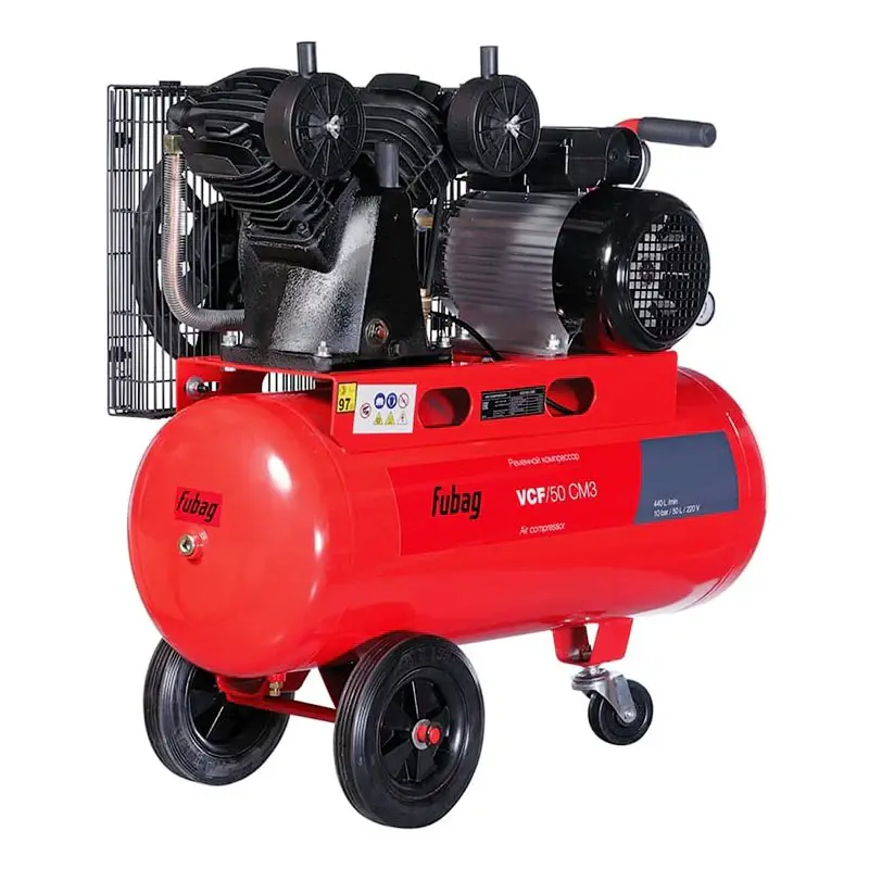 Компрессор Fubag VCF/50 CM3 с ресивером на 50 л нагнетает давление до 10 бар, обеспечивает стабильное питание профессионального пневмоинструмента в автосервисе, на стройплощадке или на производстве. Модель с производительностью 440 л/мин повышает эффективность работ с использованием сжатого воздуха.