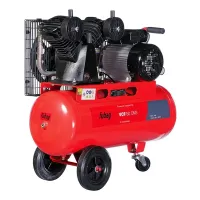 Масляный компрессор оснащен однофазным электродвигателем мощностью 2,2 кВт с защитой от перегрузки. Двухцилиндровая одноступенчатая головка VCF выполнена из чугуна для более высокого КПД. Раздельные цилиндры с увеличенной площадью охлаждающих ребер обеспечивают оптимальный отвод тепла от двигателя. Ременная передача повышает моторесурс, делает более плавным старт и мягкой работу компрессора за счет демпфирующего действия ремня, снижает уровень шума.
