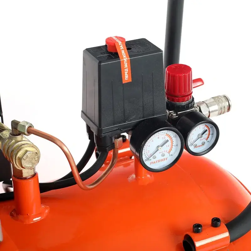 Ресивер компрессора PATRIOT 100-440I объемом 100 л имеет защитное антикоррозионное покрытие и клапан для слива конденсата. Для подсоединения различного пневмооборудования прибор оснащен штуцерами двух типов: быстросъемным рапидным и «елочкой» с краном. Многоразовый воздушный фильтр предохраняет поршни от загрязнения и преждевременного износа. Уровень масла в картере удобно отслеживать через смотровое окно. Для продолжительной безопасной службы компрессор оснащен устройством защиты от перегрузок, термозащитой, предохранительным клапаном для аварийного стравливания давления в ресивере.