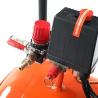 После запуска двигателя прессостат автоматически поддерживает работу компрессора, включая и отключая нагнетание воздуха. Два манометра позволяют контролировать давление в ресивере и на выходе. Давление на выходе можно изменить с помощью поворотного регулятора.