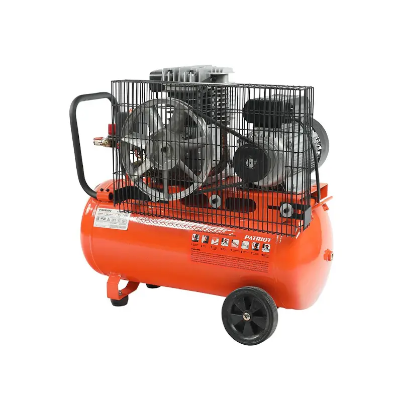 Поршневой ременной компрессор PATRIOT PTR 50-360I подает сжатый атмосферный воздух для питания различного пневмооборудования и пневмоинструментов: шлифмашины, пистолета, гайковерта, дрели, степлера и др. Производительность прибора бытового класса составляет 360 л/мин, максимальное давление — 10 бар, этого вполне достаточно для потребностей небольшой мастерской, стройки или автосервиса. Компрессор рекомендуется использовать в повторно-кратковременном режиме с продолжительностью цикла 6-10 минут. Непрерывная работа возможна не более 15 мин.