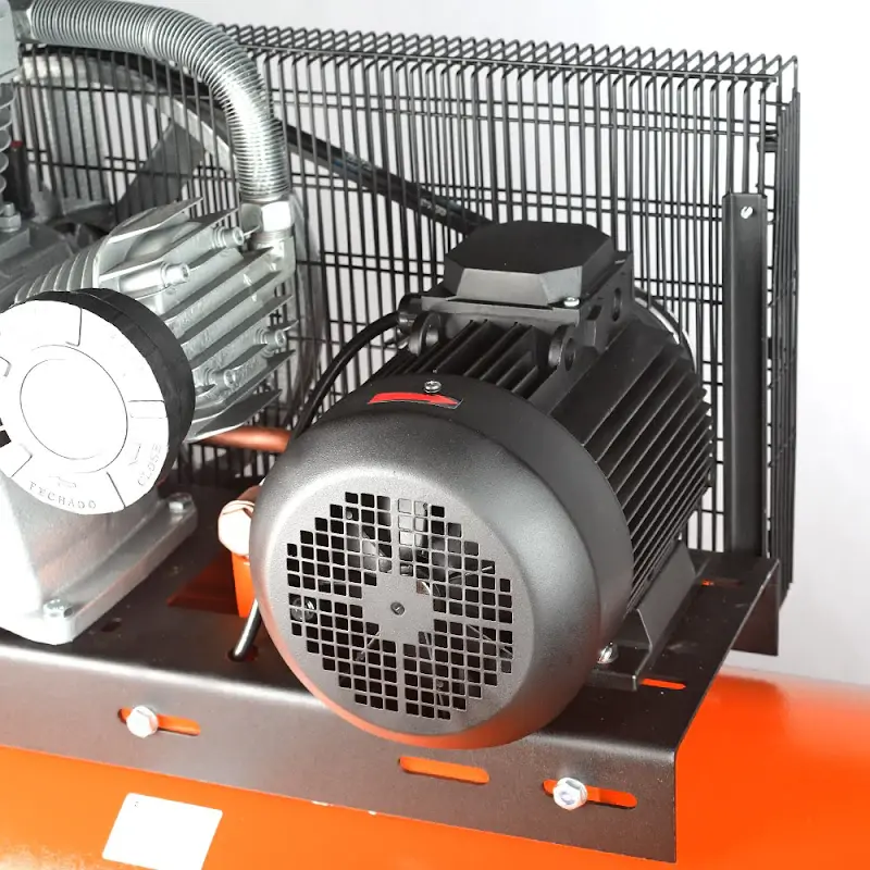 Трехцилиндровый компрессор с ременной передачей и увеличенной производительностью. Применяется для сервисных, ремонтных работ в гараже, на шиномонтаже и автосервисе.