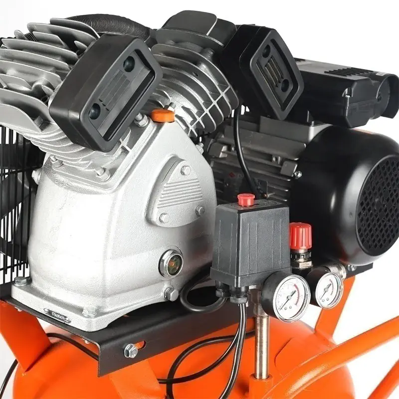 Двухцилиндровый компрессор с ременной передачей и увеличенной производительностью. Применяется для сервисных, ремонтных работ в гараже, на шиномонтаже и автосервисе.