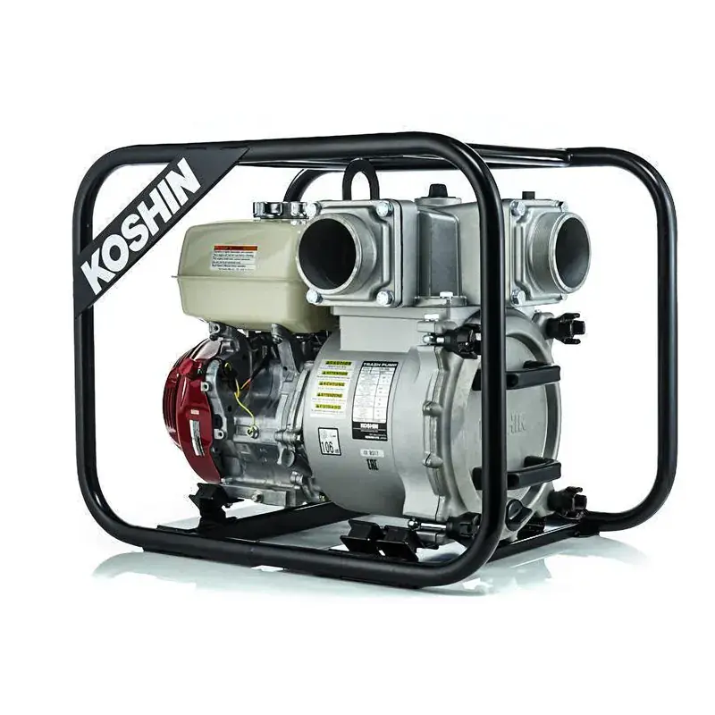 Мотопомпа оснащена 4-тактным экономичным и надежным в работе двигателем Honda GX390с верхним расположением клапанов. Система облегченного запуска снижает тяговое усилие на пусковом тросе, поэтому вы без проблем заведете мотор. Вам не придется предварительно заполнять шланг для начала работы бензиновой мотопомпы Koshin. Достаточно отвернуть крышку на корпусе и залить воду внутрь.