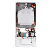 В котел встроен вентилятор, работа которого настраивается многоступенчатой регулировкой. При этом учитывается система отвода дымовых газов и длина труб.