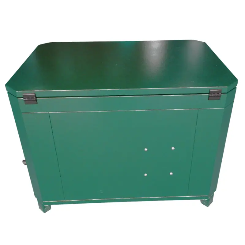 Шумопоглощающий теплоизолирующий утеплитель - боковые стенки и верхняя крышка кожуха покрыты вспененным каучуком Он поглощает шум и не впитывает влагу. Утепленное двойное металлическое дно оснащено ножками, для поднятия от уровня установочной площадки, которые оберегают кожух от коррозии. Для ввода кабелей в днище контейнера предусмотрено два кабельных ввода.