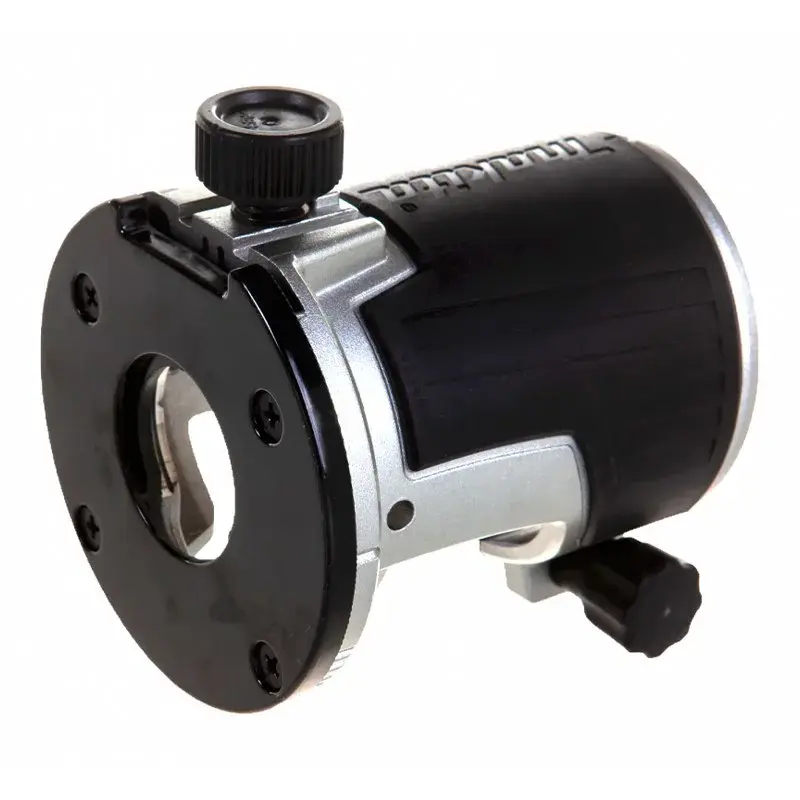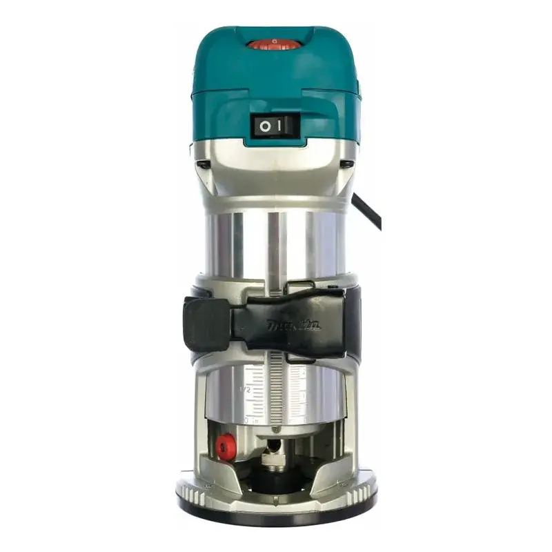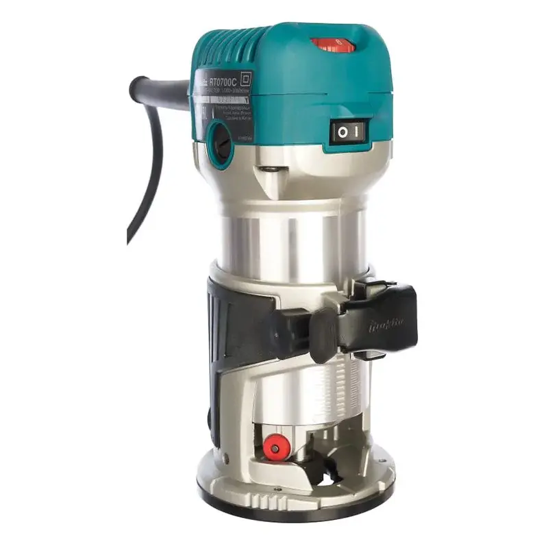 Инструмент оснащен мерной шкалой, обеспечивающей точную настройку необходимой глубины реза. Регулировка выполняется с помощью поворотного колесика в передней части корпуса сетевого фрезера Makita RT0700CX2. Шаг составляет 1/10 мм, благодаря чему выбор будет максимально точным.