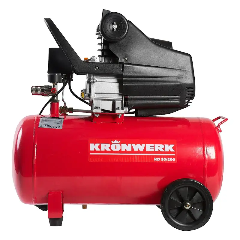 Масляный компрессор Kronwerk – это портативный агрегат, который служит для накопления и подачи сжатого воздуха под высоким давлением. С помощью удобного универсального соединения к компрессору подключается различное пневматическое оборудование – краскопульты, пневмошуруповёрты и т. д.