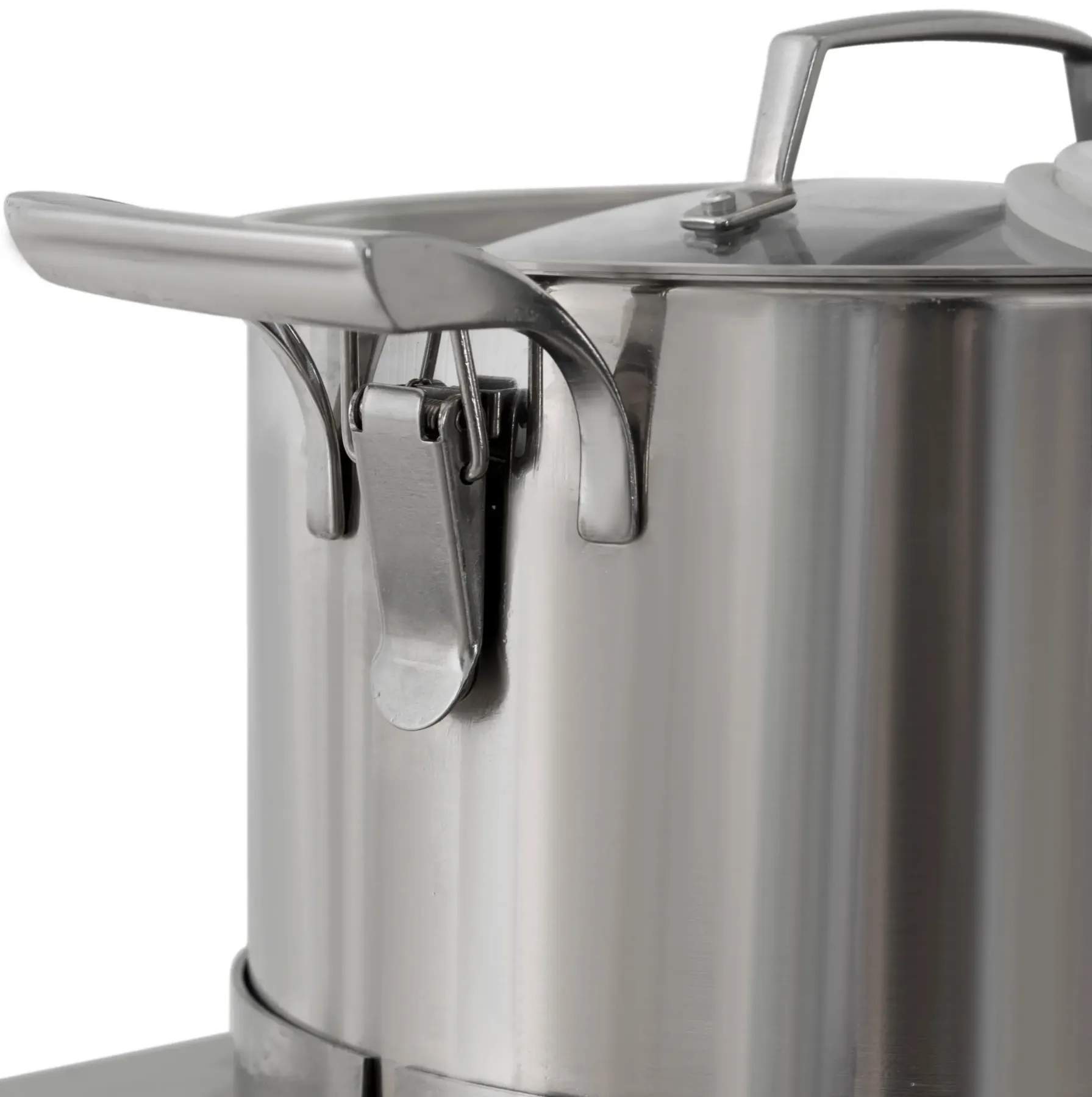 Дежа и корпус выполнены из пищевой нержавеющей стали. Материал не впитывает посторонние запахи и легко моется после использования. К гладкой поверхности не прилипают остатки сырья. Система оснащена защитой от заклинивания и аварийной остановкой, делающими процесс использования оборудования максимально простым, понятным и безопасным.