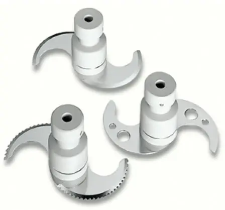 Крепкие ножи-насадки с волнистым лезвием из стали, подверженной тепловой обработкой.