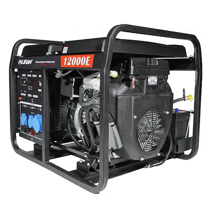 Генератор бензиновый LIFAN 10 GF-4 /LF12000E/ 00-00000510 выполнен в классическом варианте с прочной стальной рамой. Такая конструкция обеспечивает жесткую привязку всех компонентов, снижает вибрацию и уровень шума.