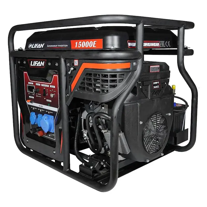 Бензиновый генератор Lifan 15000E представляет собой мощное устройство для подачи электрического тока.