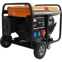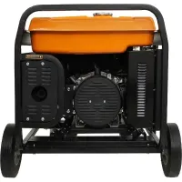 Медная обмотка позволяет повысить КПД, уменьшить расход топлива, нагрев и износ агрегата, тем самым увеличивая срок его службы. Благодаря удобным колесам диаметром 10" устройство легко перемещать. В комплекте с генератором поставляется аккумулятор 12В/36Ач.