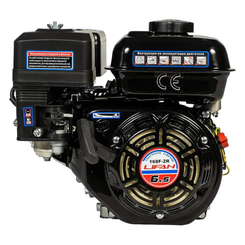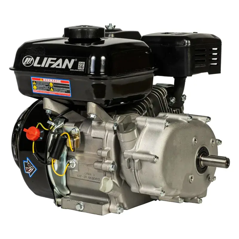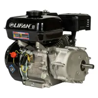 Двигатель LIFAN 168F-2R D20, 7А используется совместно с мотоблоками и культиваторами. Тип двигателя: бензиновый, 4-хтактный, одноцилиндровый, с воздушным охлаждением. Имеет понижающий цепной редуктор с центробежным сцеплением. Дополнительно оснащён катушкой освещения 7 А, позволяющей подключить соответствующее электрооборудование. Вращение вала против часовой стрелки.