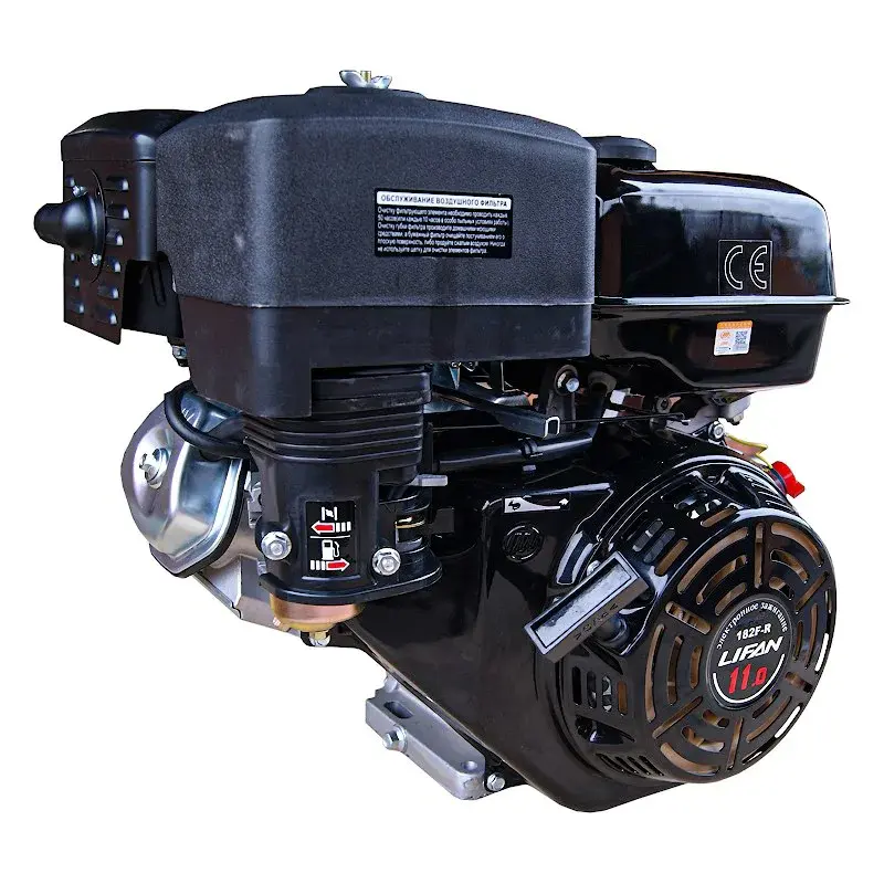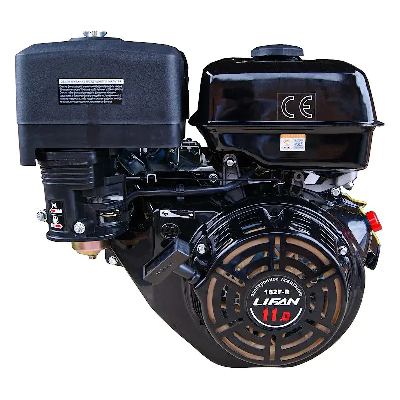 Двигатель LIFAN 182F-R 11 л.с. (бензиновый) устанавливается на различную технику предполагающую наличие понижающего редуктора и сцепления.