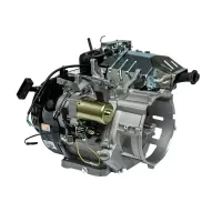 Данная модель имеет горизонтальный вал, воздушное охлаждение, электрический и ручной старт. Двигатель сочетает в себе долговечность, экономичность с умеренной стоимостью и простотой в использовании.