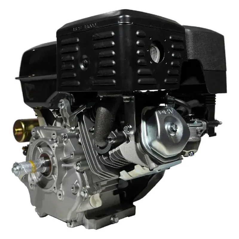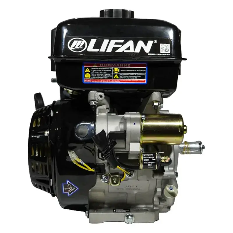 Бензиновый двигатель Lifan 190 FD- L разработан для установки на мототехнику различного уровня. Двигатель хорошо подходит для установки на культиваторы и мотоблоки, мотобуксировщики, мотопомпы, генераторы и другую технику. Эта модель сочетает в себе долговечность, экономичность с умеренной стоимостью и простотой в использовании. Наличие понижающего редуктора позволяет расширить область применения двигателя. Это четырехтактный одноцилиндровый двигатель внутреннего сгорания. Рабочий объем цилиндра составляет 420 кубических сантиметров. Диаметр цилиндра и тип газораспределительного механизма позволяют обеспечить компактные размеры двигателя, он свободно устанавливается на многие модели малой сельскохозяйственной техники. В качестве топлива эта модель использует широко распространенный автомобильный бензин марки АИ-92, потому проблем с горючим не возникнет. Коленчатый вал имеет горизонтальное расположение, это также способствует небольшим размерам, а кроме того существенно упрощает конструкцию и монтаж силового агрегата на шасси. Крутящий момент достигает 25 Н.м при 3600 оборотов в минуту, при этом сохраняется высокая стабильность работы и небольшой расход бензина. Емкость топливного бачка равна 6,5 литрам, одной заправки достаточно для длительной непрерывной работы. В качестве смазки используется доступное и известное каждому автомобилисту моторное масло 10х30, 10х40 для одной заправки маслом требуется не более 1,1 литра. Транзисторная система зажигания проста в обслуживании и долговечна, она способствует стабильной работе двигателя при любых условиях. Двигатель Lifan 190 FD-L обладает массой в 36 килограмм, это легковесный и компактный агрегат, он способен обеспечить высокую продуктивность работы при минимальных затратах и потерях. Его простая конструкция не создаст проблем при установке или при обслуживании, использование эффективного воздушного охлаждения позволяет активно использовать мотор даже в жаркую погоду, удобный пусковой тросик обеспечивает легкий запуск двигателя.