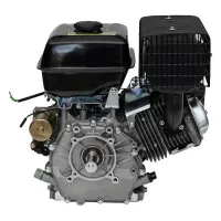 Наличие топливного крана, ограждающего карбюратор от попадания в него топлива, важно при установке на транспортных средствах. Размеры двигателя сопоставимы с предыдущей по мощности моделью 192F на 17л.с., увеличение мощности достигнуто за счет большего хода поршня, здесь он 69мм. Катушка на 7А с реле-регулятором (выпрямителем) тока позволяет подключить электрооборудование до 84 Вт.