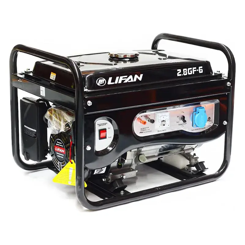 Бензиновый генератор Lifan 2.8GF-6 с двигателем мощностью 7 л.с. отлично подходит как для бытовых, так и профессиональных задач. Продуманная панель управления значительно облегчает эксплуатацию: защитные крышки розеток, датчик уровня топлива, вольтметр.