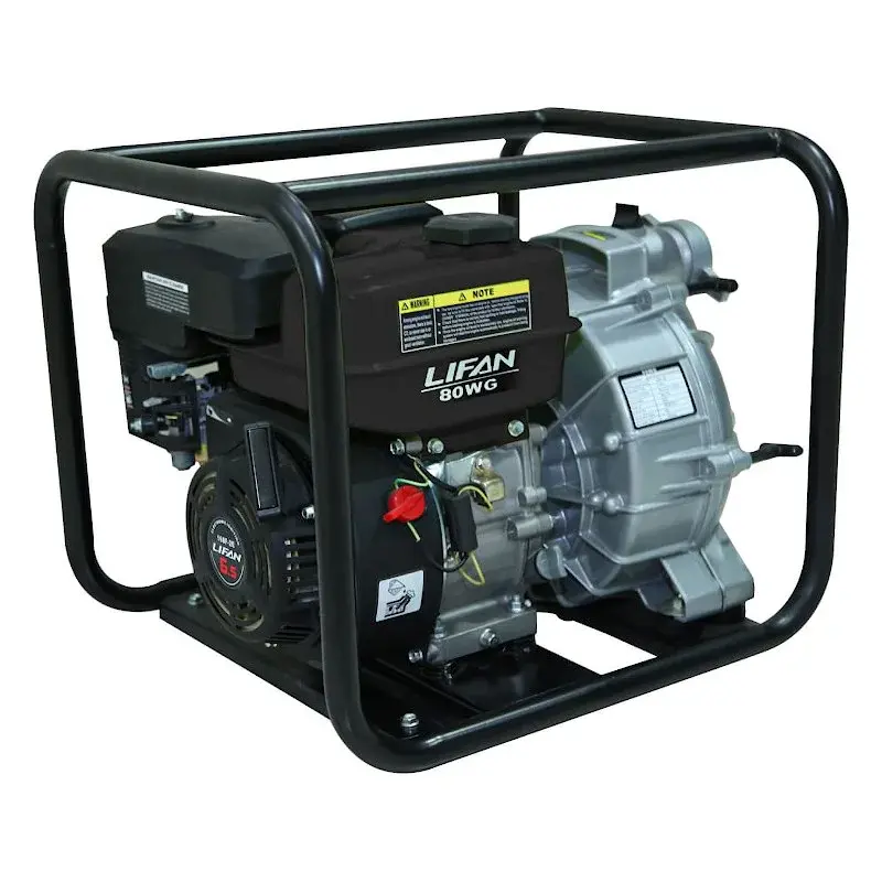 Бензиновая мотопомпа Lifan 80WG перекачивает до 1100 л воды в минуту и подходит для бытовых, сельскохозяйственных и других задач. Насос может работать с чистой или загрязненной водой с твердыми примесями размером до 20 мм.