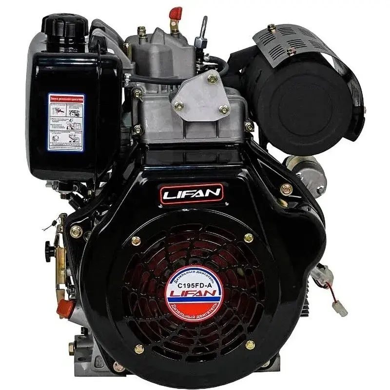 Двигатель Lifan Diesel С195FD-А D25 6A цилиндрический вал — одноцилиндровый дизельный двигатель, который используется для генераторов. Данная модель имеет горизонтальный вал, воздушное охлаждение,электрический старт. Данный двигатель оснащен воздушным фильтром с масляной ванной, с двух компонетным фильтрующим элементом.