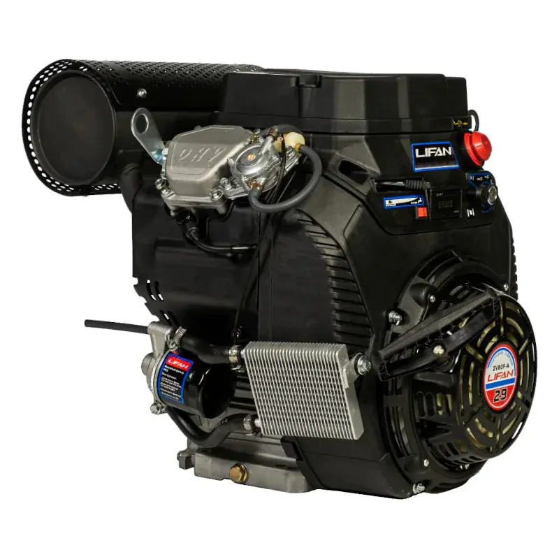 Двигатель LIFAN LF2V80F-A, 29 л.с. D25, 20А разработан специально для использования совместно с картингами, вездеходами, мотобуксировщиками, минитракторами, снегоходами, багги. Тип двигателя: бензиновый, 4-хтактный, двухцилиндровый, с воздушным охлаждением. Оснащен датчиком давления масла, маслянным радиатором, счетчиком моточасов. Степень сжатия: 8.5 : 1. Вращение вала против часовой стрелки.