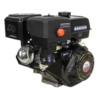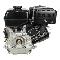 Данный двигатель имеет горизонтальный вал, воздушное охлаждение и ручной старт. На двигателе установлен глушитель и классический воздушный фильтр.