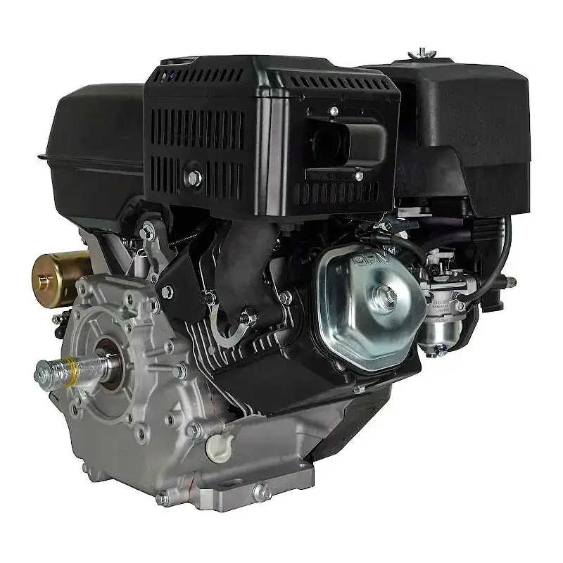 Данный двигатель имеет горизонтальный вал, воздушное охлаждение, ручной и электрический старт. На двигателе установлен глушитель и классический воздушный фильтр. На корпусе воздушного фильтра стоит праймер подкачки топлива для легкого запуска двигателя.