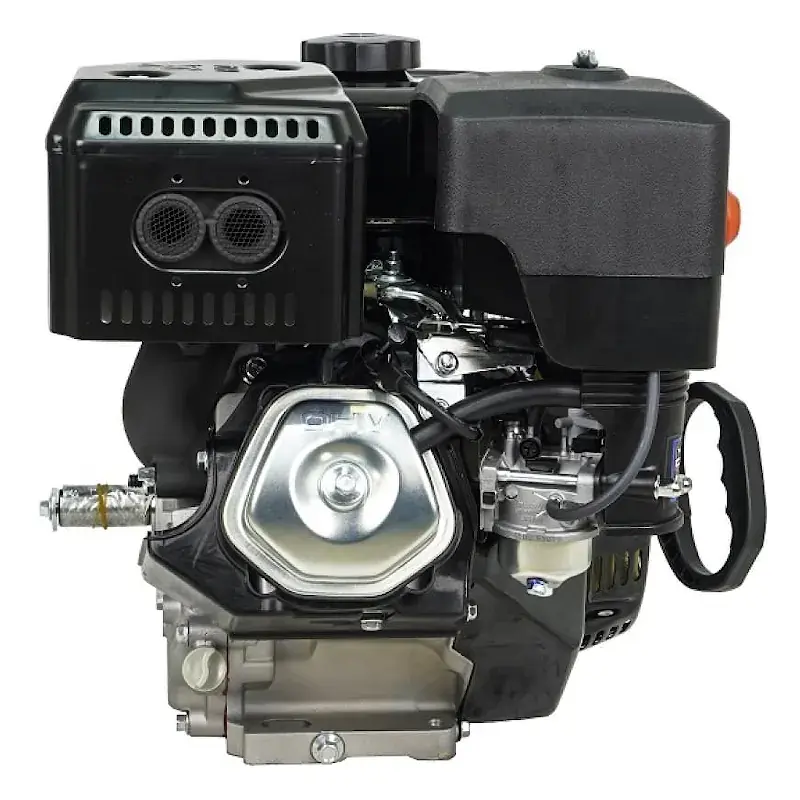Данный двигатель имеет горизонтальный вал, воздушное охлаждение и ручной старт. На двигателе установлен глушитель и классический воздушный фильтр. На корпусе воздушного фильтра стоит праймер подкачки топлива для легкого запуска двигателя.