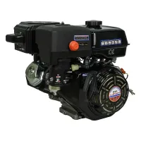 Данный двигатель имеет горизонтальный вал, воздушное охлаждение и ручной старт. На двигателе установлен глушитель и классический воздушный фильтр. На корпусе воздушного фильтра стоит праймер подкачки топлива для легкого запуска двигателя.