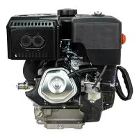 Данный двигатель имеет горизонтальный вал, воздушное охлаждение, ручной и электрический старт. На двигателе установлен глушитель и классический воздушный фильтр. На корпусе воздушного фильтра стоит праймер подкачки топлива для легкого запуска двигателя.