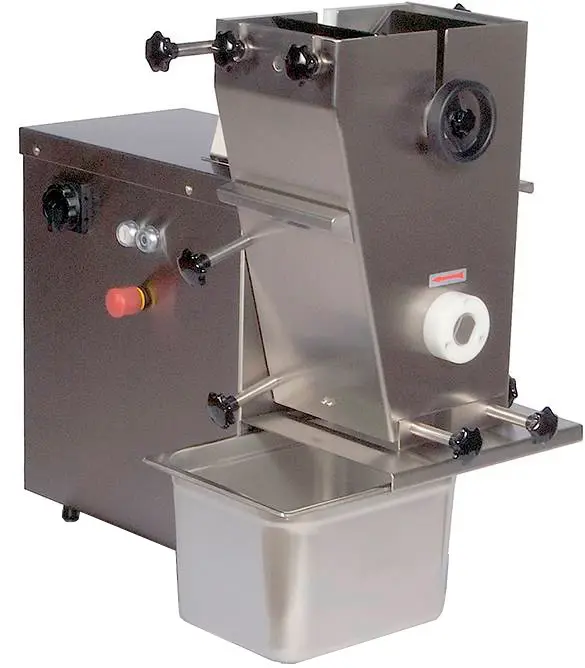 Так как мясо попадает на ножи автоматически под тяжестью собственного веса, то отсутствует опасность травматизма.