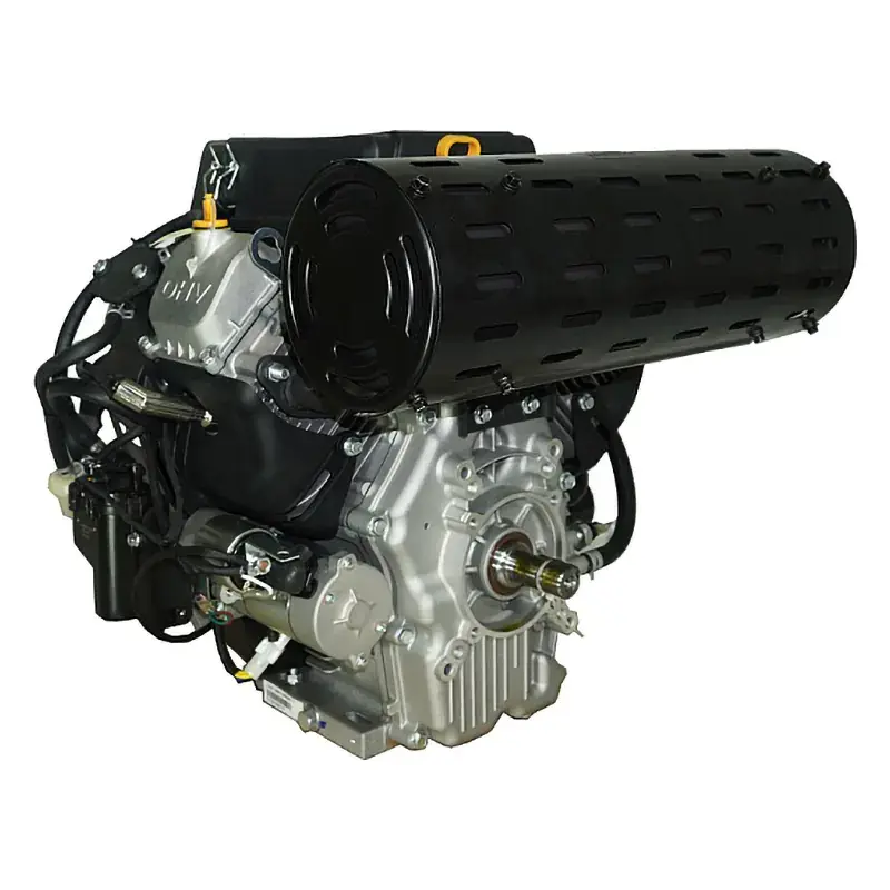 Двухцилиндровый инжекторный двигатель, объем 764 куб.см, 30 л.с, горизонтальный вал 25 мм, электрический и ручной запуск, катушка освещения 20А.