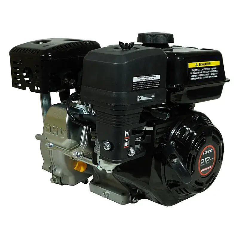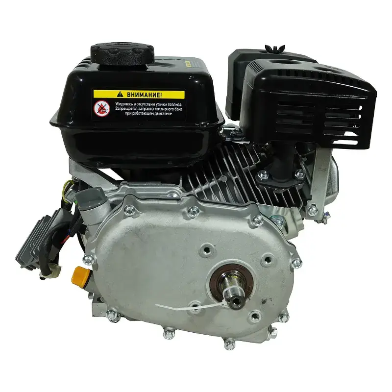 Одноцилиндровый двигатель, объем 212 куб.см, 7 л.с, горизонтальный вал 20 мм, ручной запуск, катушка освещения 5А, редуктор.
