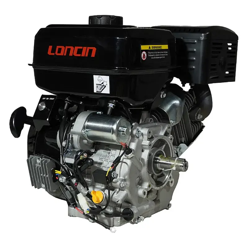 Одноцилиндровый двигатель, объем 458 куб.см, 20 л.с, горизонтальный вал 25 мм, ручной и электрический запуск, катушка освещения 7А.