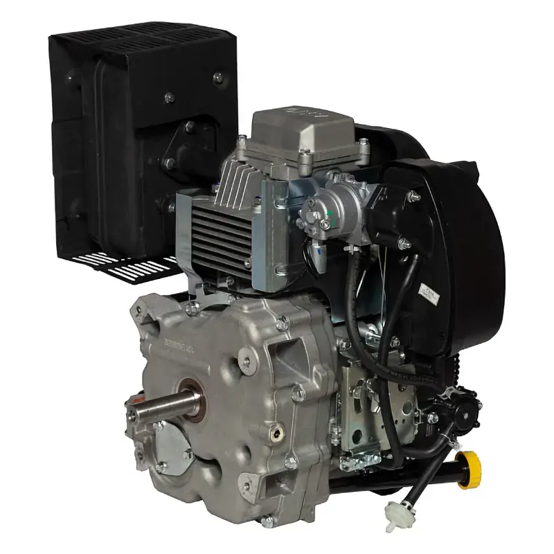 Одноцилиндровый двигатель, объем 608 куб.см, 19 л.с, вертикальный вал 25.4 мм, электрический запуск, катушка освещения 15А.