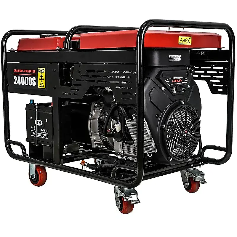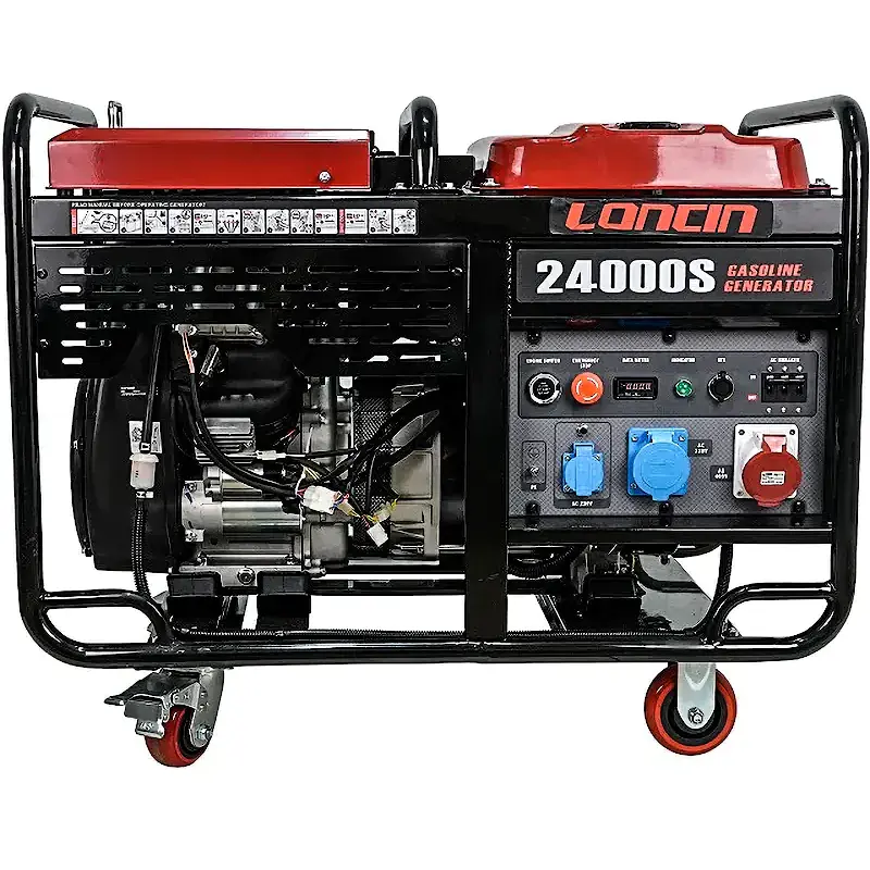 Трехфазный бензиновый генератор используется в качестве автономного источника электроэнергии в домашних условиях или на улице. Данная модель имеет электрический старт и оснащена бензиновым двигателем Loncin LC2V90FD. Время непрерывной работы генератора на одной заправке составляет 4.6 ч.
