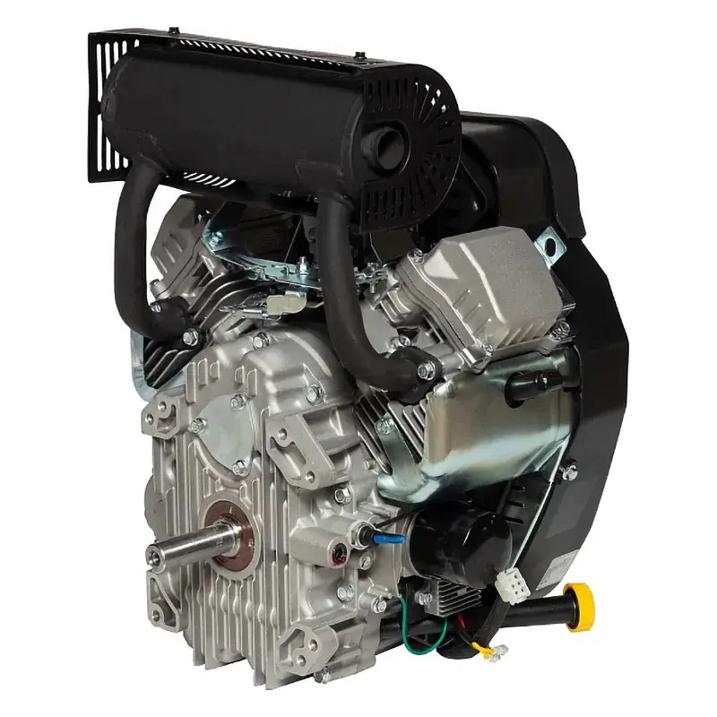 Двухцилиндровый двигатель, объем 802 куб.см, 24 л.с, вертикальный вал 25.4 мм, электрический запуск, катушка освещения 15А.