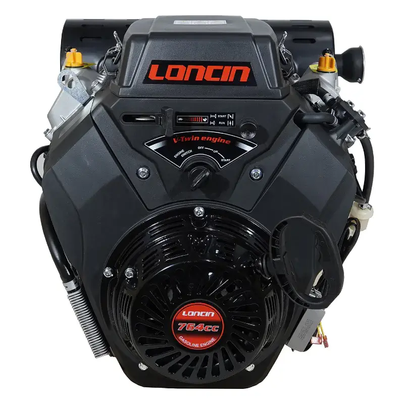 Бензиновый двигатель Loncin LC2V80FD (A type) оснащен горизонтальным валом отбора мощности диаметром 25,4 мм, генераторной катушкой 20 А, имеет принудительную систему смазки. Мотор легко заводится с помощью электростартера.