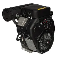 Основные достоинства - высокая мощность, низкая вибрация при работе, экономичность и умеренная цена. Двухцилиндровый двигатель, объем 999 куб.см, 35 л.с, горизонтальный вал 28.575 мм, электрический запуск, катушка освещения 20А.