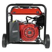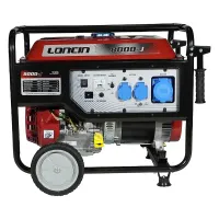 Четырехтактный двигатель мощностью 15,1 л.с. заводится при помощи ручного стартера. Для подключения нагрузки на панели бензинового генератора Loncin предусмотрены три розетки напряжением 220 В: две на 16 А и одна силовая на 32 А. Для подзарядки автомобильных аккумуляторов можно воспользоваться 12-вольтовым выходом. Вольтметр с аналоговой шкалой наглядно показывает выходное напряжение. Одной заправки бензобака хватает на 5 часов работы.
