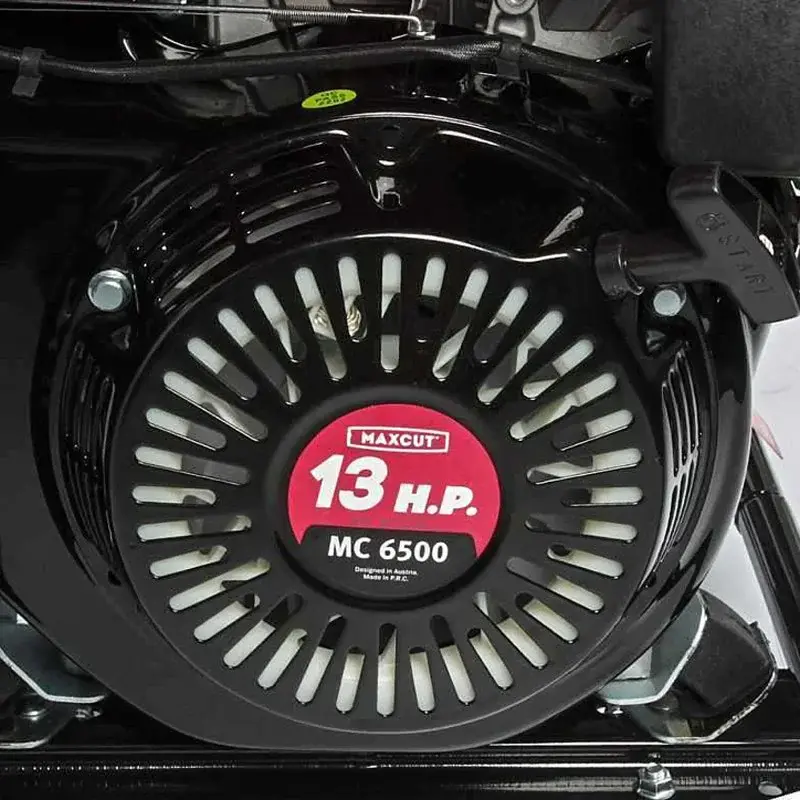 Аппарат включается при помощи ручного стартера. Такая конструкция является неприхотливой и надежной. Бак для горючего у бензогенератора MaxCut MC6500 обладает емкостью в 25 л. При заявленном расходе горючего в 438 г/кВтч и 100 % нагрузке, время непрерывной работы на полной заправке составит 8 ч.